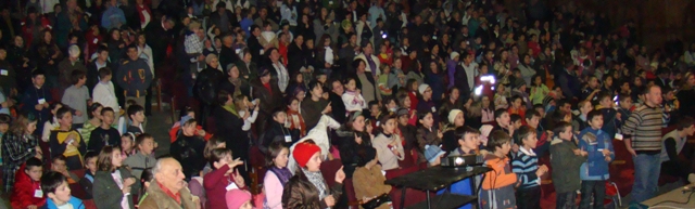 Bucuria a fost şi mai mare atunci când vineri, 4 decembrie 2009, sala Casei Culturii a devenit neîncăpătoare, fiind umplută cu copii şi vârsnici, de toate culorile denominaţionale, mesajul Evangheliei fiind vestit în auzul tuturor, cu preponderenţă pe înţelesul copiilor. Ne-am bucurat să vedem multe feţe străine bisericilor noastre, oameni care au văzut invitaţiile noastre care au împânzit tot oraşul. A fost o mare bucurie şi credem că această bucurie este mică în comparaţie cu bucuria care se va naşte în inimile lor, atunci când îl vor accepta pe Isus ca Mântuitor personal.