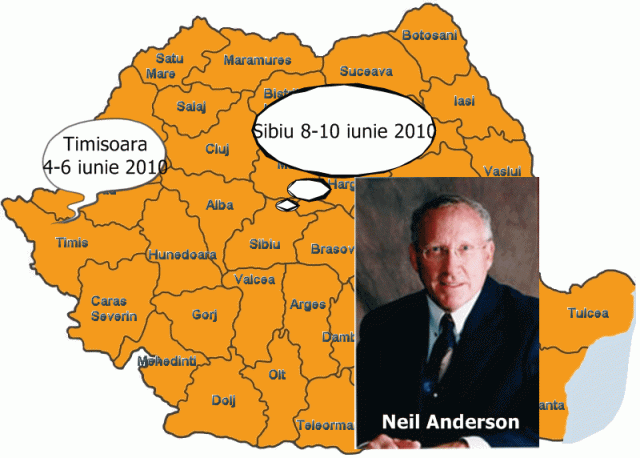 Ne face placere sa va anuntam ca in perioada 4 – 12 Iunie a.c., in parteneriat cu BIG Impact, cunoscutul scriitor crestin Neil T. Anderson, autor a peste 40 de carti, dintre care amintim The Bondage Breaker (Cel ce sparge lanturile robiei), Victory over the Darkness (Biruinta asupra Intunericului) si Released form Bondage (Eliberare din robie), va conferentia in Romania, pe tema Matur si Liber in Cristos.