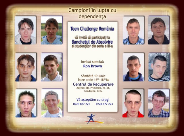 Ron Brown, the New Southern California Teen Challenge Director va fi invitatul special al acestei importante sarbatori care il motiveaza pe Catalin Baciu – director Teen Challenge Romania – sa priveasca in urma cu bucurie si in viitor cu speranta.