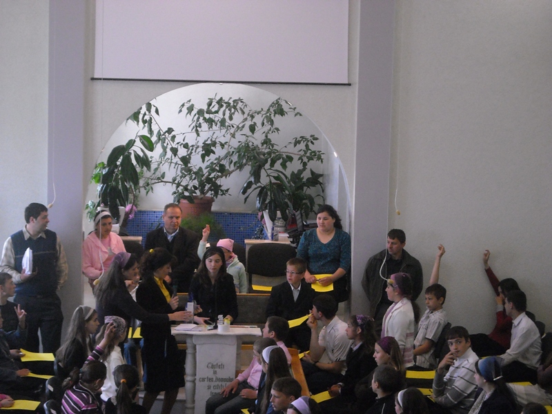 Aşa s-au adunat şi cei 206 copii, împreună cu însoţitorii lor, învăţătorii de Şcoală Duminicală, ca un furnicar ce a umplut sala Bisericii „Speranţa”, Suceava.