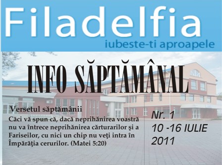 De duminica 10 iulie 2011, Biserica Filadelfia, Suceava va avea o foaie de informare care se va distribui gratuit tuturor celor care vor participa la intalnirile bisericii. Cornel Ciobanu si Puiu Ursaciuc sunt responsabilii directi pentru ca saptamana de saptamana acest material sa fie disponibil.