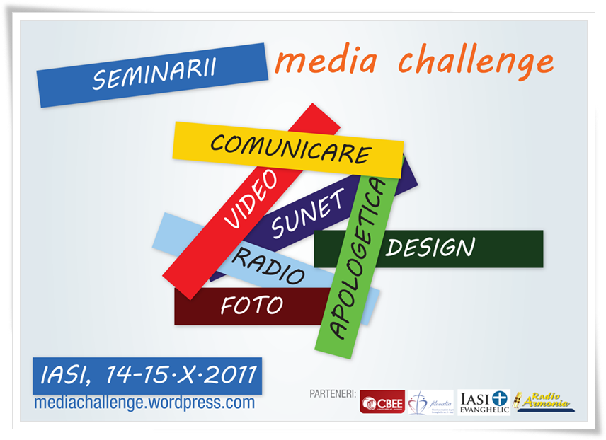 Secţia de Jurnalism a Colegiului Biblic Est European din Oradea împreună cu Iași Evanghelic și Biserica Filocalia Iași, organizează workshop-uri interactive de specializare pe diferite domenii media și nu numai, în perioada 14-15 octombrie, la Iaşi.