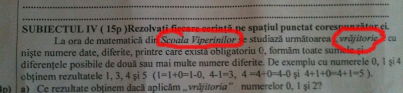 Astazi – 05 noiembrie 2011- la Colegiul National Stefan cel Mare din Suceava s-a desfasurat concursul national de matematica, Euclid. Ultima proba a elevilor de clasa a-II-a face trimitere evidenta la Harry Potter. Elevii sunt indemnati sa foloseasca „vrajitoria” pentru a rezolva problema. Sa fie ignoranta din partea organizatorilor sau o actiune premeditata ?