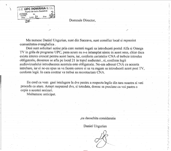 Prietenul meu Daniel Ungureanu a scris deja către UPC şi RDS.