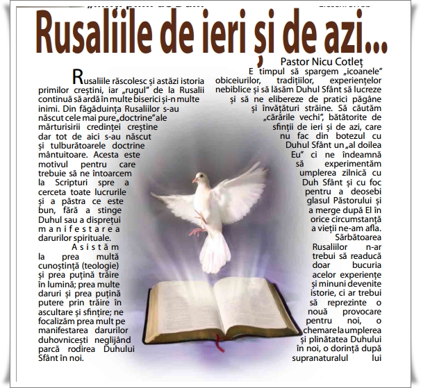 Am o intrebare-[nu-i rautacioasa] -credeti ca acel foc depre care spunea Ioan este legat de ,,ziua cincizecimii”[Rusalii]