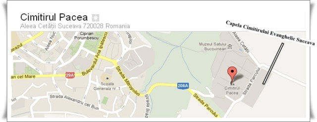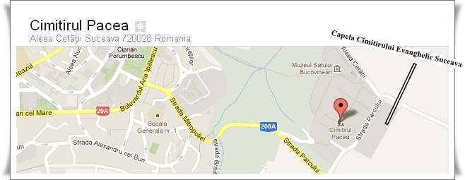 Reprezentanţii bisericilor evanghelice din municipiul Suceava au ajuns la un consens în ce priveşte modul în care va arăta Capela Cimitirului Evanghelic. Construcţia Capelei se va face pe terenul alocat pentru aceasta în proximitatea Cimitirului Pacea din Suceava. Daniel Drăgoi este încrezător ca proiectul va fi implementat în cel mai scurt timp posibil pentru ca bisericile evanghelice din municipiu să aibă cimitirul lor.