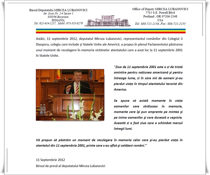 Acest articol a fost publicat în DIVERSE și etichetat Mircea Lubanovici, Mircea Lubanovici 11 septembrie. Pune un semn de carte cu legătura permanentă.