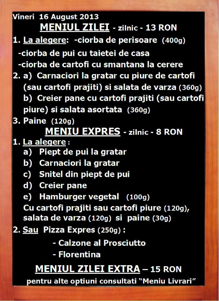 Meniul zilei: Vineri 16.08.2013