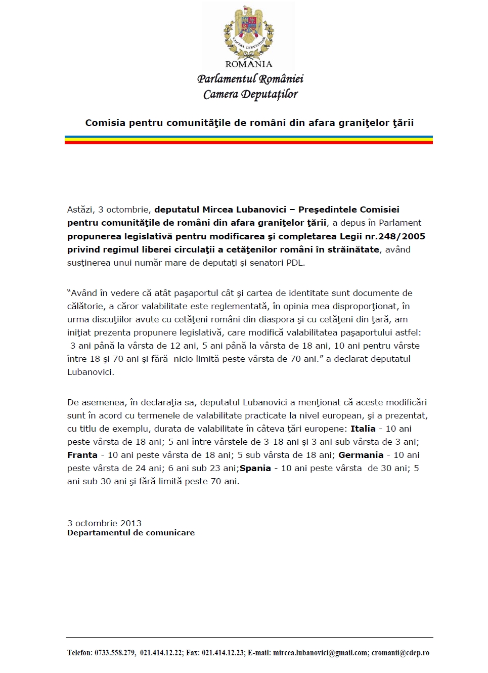 Propunere legislativa – Deputat Mircea Lubanovici