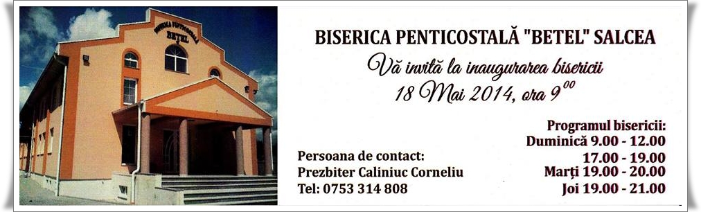 Pingback: Salcea, jud. Suceava: Inaugurarea Bisericii Penticostale Betel | Romania Evanghelica
