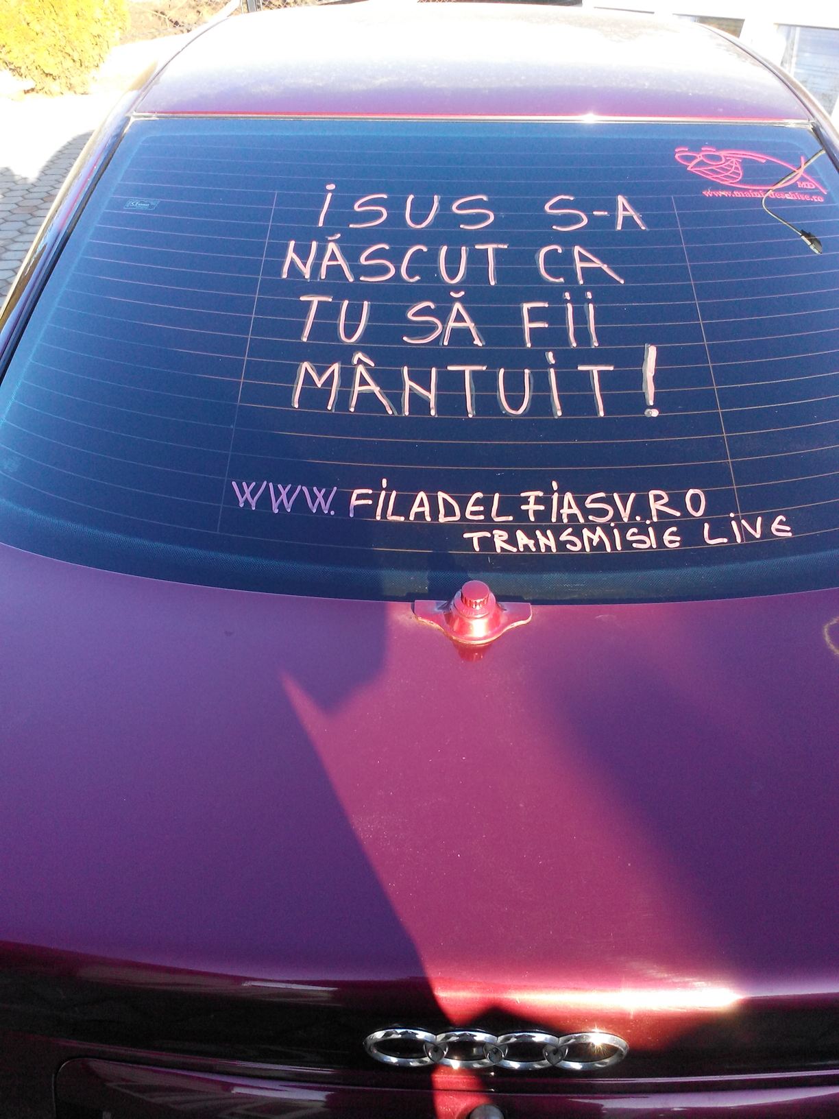 Un sucevean a găsit încă o utilizare a circuitelor de pe luneta mașinii personale. Mesajul scris este adevărat, clar și cât se poate de direct.
