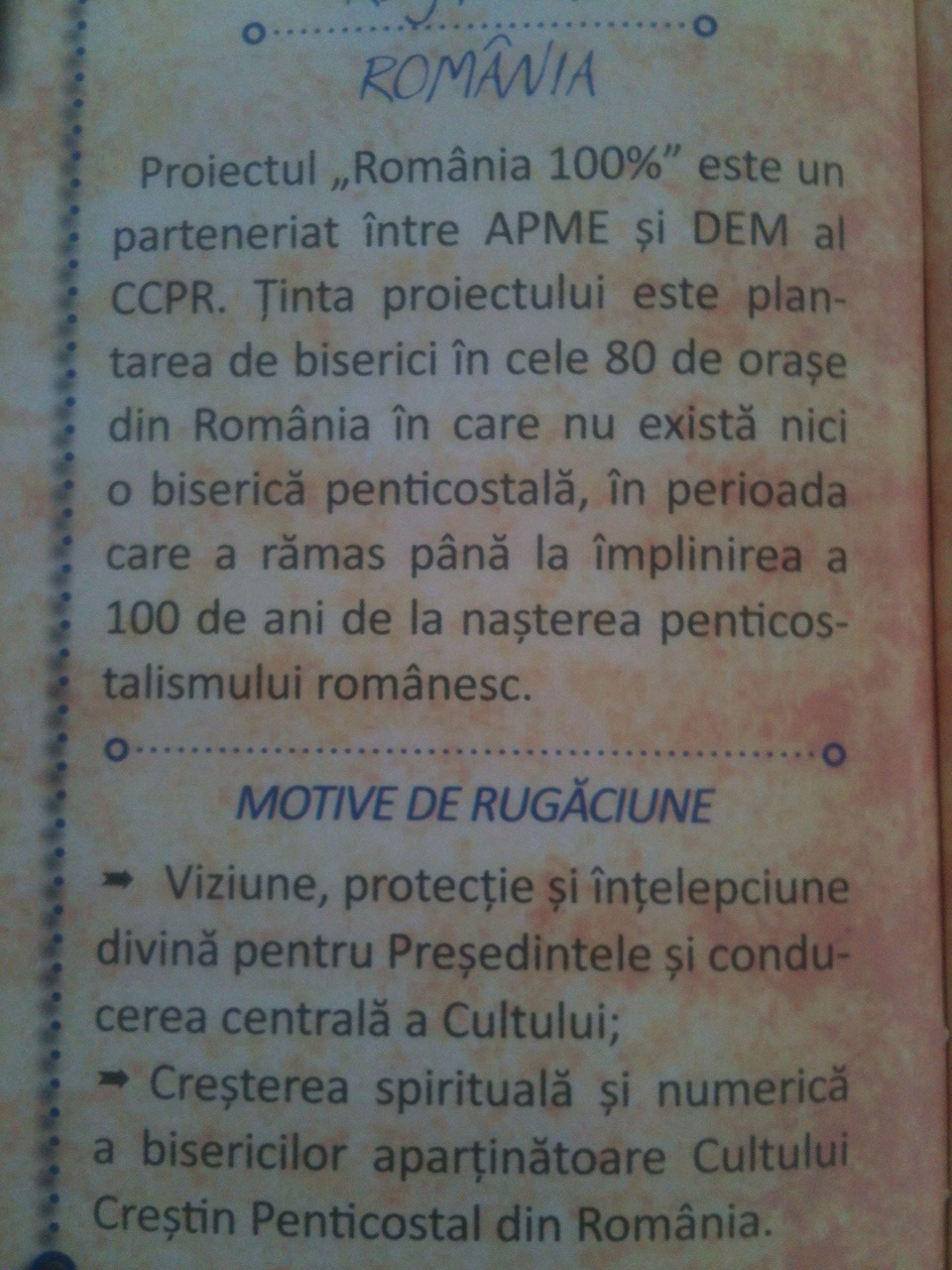 Si în 2015 Agentia Penticostala de Misiune Externa din Romania a tiparit un calendar de rugaciune. Se poate obtine în forma tiparita sau poate fi consultat pe site-ul agentiei http://www.apme.ro.