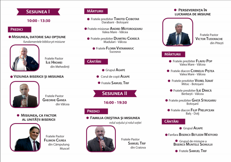 Misiunea Agape din Londra organizează o conferință de misiune pe data de 23 februarie. Florin Vatamaniuc din Suceava este invitat să depună o mărturie în favoarea lucrării misionare. Pentru această conferință Misiunea Agape din Londra cooperează cu bisericile: Betleem Watford, Muntele Sionului, Carmel, Emanuel, Maranata, Horeb și Betezda. Pentru copiii participanților s-a organizat un program aparte pe categorii de vârstă.