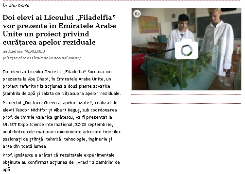 Doi elevi de la Liceul Teoretic Filadelfia vor pleca în Abu Dhabi