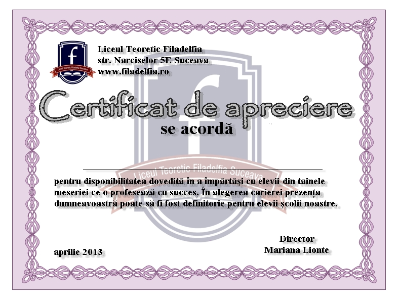 certificat de apreciere Lionte