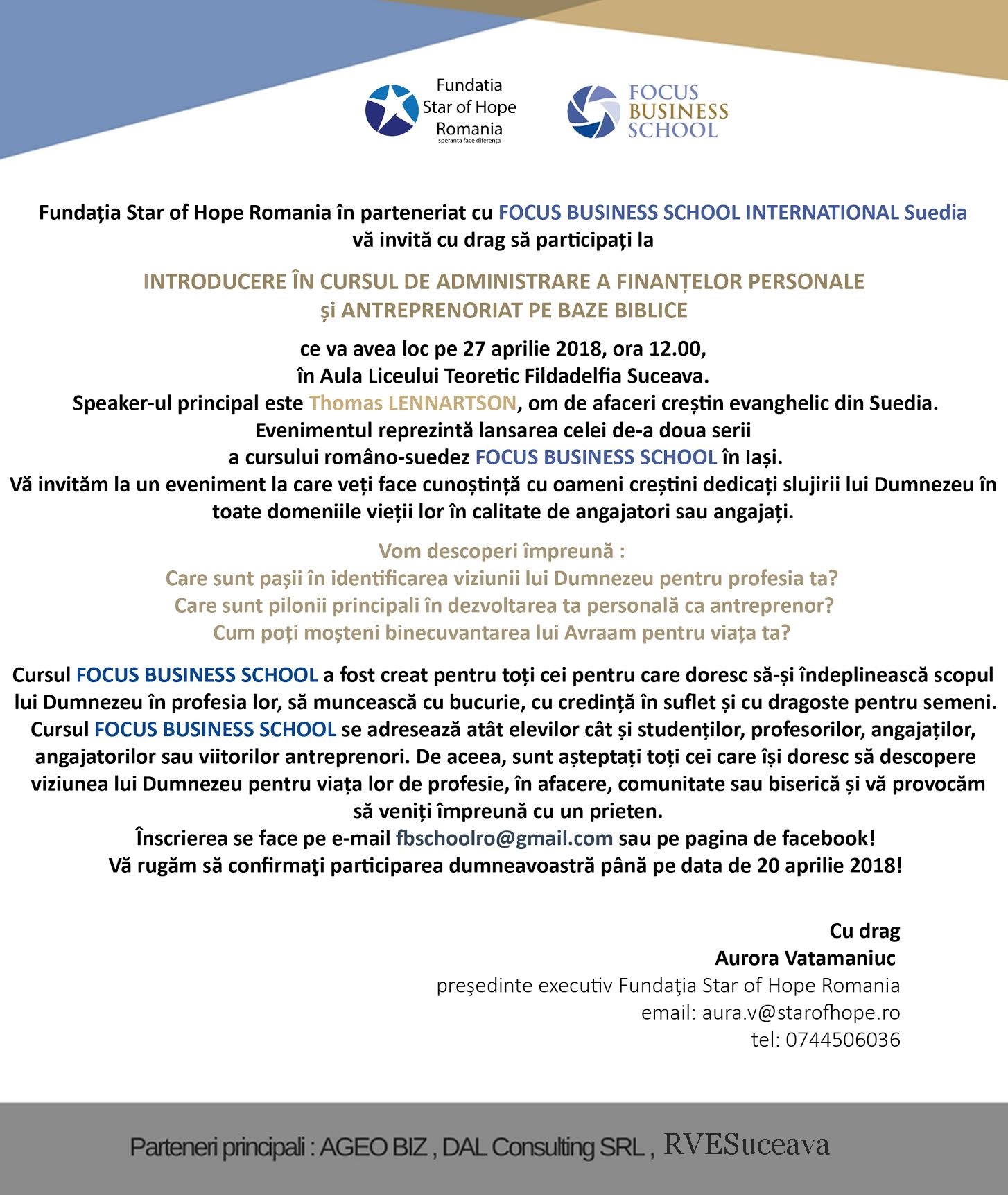FBS Suceava, 27 aprilie 2018, ora 12, Liceul Filadelfia