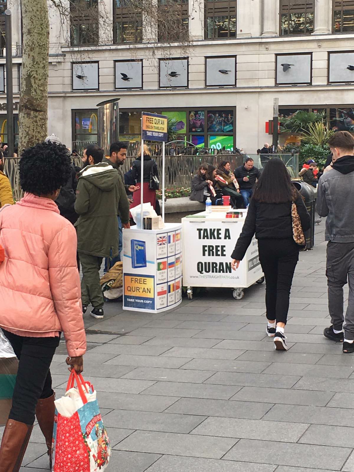 În Leicester Square, Londra, sămbătă pe întâi februarie trecătorii sunt invitați să ia Coranul. Am primit imaginea, iar aceasta arată clar, că expansiunea islamului este o realitate care pe fondul defensiv al bisericii duce la transformarea societății. Anglia este sub asalt de câțiva ani buni și pare să cedeze tot mai mult teren din cauza secularizării tot mai puternic conturate. Dr. Martyn Lloyd – Jones prevedea încă din anii ’70 situația care urmează să se instaleze în Anglia.